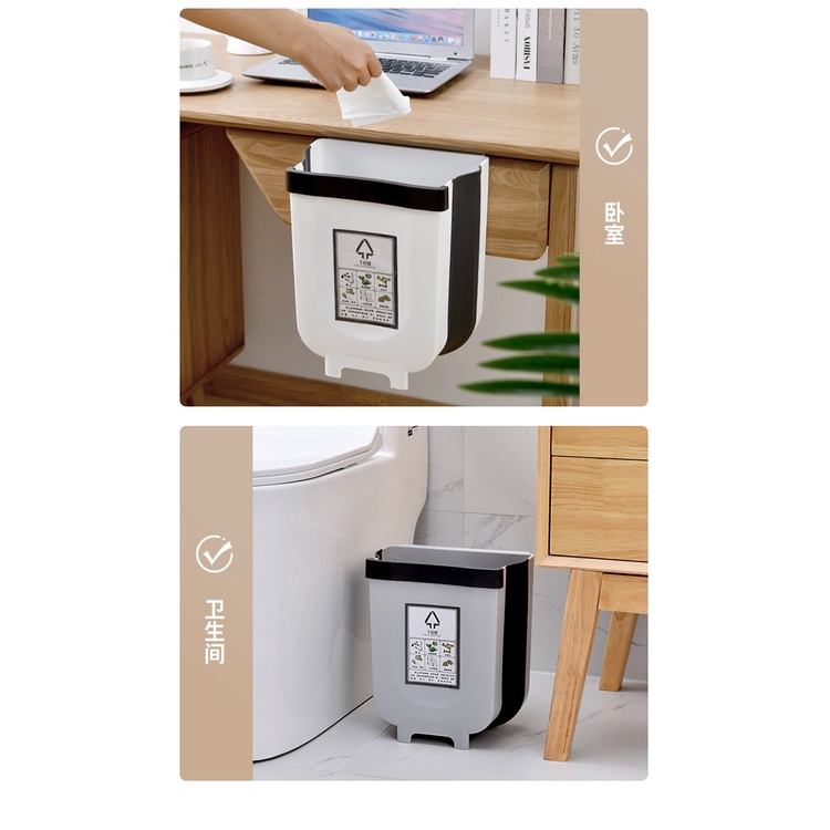 Nhà cửa & Đời sống > Dụng cụ chăm sóc nhà cửa > Thùng rác || Thùng rác gấp gọn treo cạnh tủ chất liệu nhựa tái chếCòn hàng