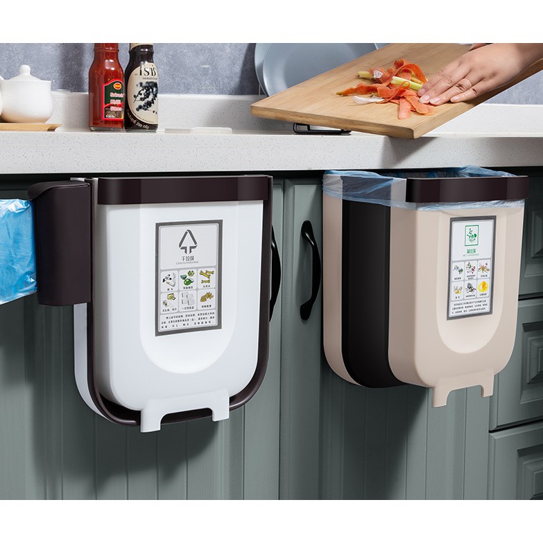 ❆ Thùng rác có thể xếp gọn tiện lợi, giữ cho bếp nhà bạn luôn sạch sẽ, ngăn nắp. Giúp bạn dễ dàng vệ sinh bệ rửa chén, thức ăn thừa khi nấu nướng, gần như không chiếm thêm bất kỳ không gian bếp nào của bạn. Có thể treo tường hoặc kẹp cánh cửa tủ tuỳ ý.❆ Dạng treo, tận dụng tốt không gian, dễ dàng gấp gọn tiết kiệm diện tích