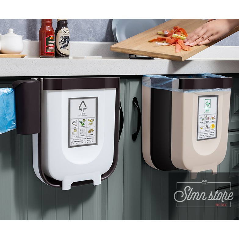 Nhà cửa & Đời sống > Dụng cụ chăm sóc nhà cửa > Thùng rác || Thùng rác, Giỏ rác VUÔNG gấp gọn treo kẹp tủ bếp nhựa dẻo siêu bền siêu nhẹ cho nhà bếp và xe hơi Slmn_ThungracGG-VuongCòn hàng