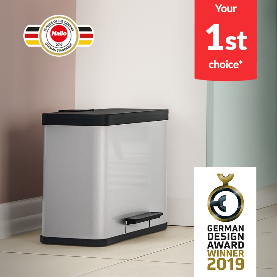 Thùng rác inox Hailo Oko Uno Duo Plus 17L + 9l hàng chính hãng, 100% sản xuất tại Đức. Thương hiệu số 1 tại Đức, đạt nhiều giải thưởng danh giá về thiết kế và thương hiệu. Thân thùng bằng thép không gỉ, chắc chắn, bền đẹp. Phần nắp đóng mở nhẹ nhàng, có đệm cao su giảm tiếng ồn. Chân đạp rộng rãi, tiện lợi. Thiết kế thùng có hai ngăn thuận tiện phân loại chất thải. Thùng được thiết kế hình chữ nhật sang trọng, phù hợp với nhiều không gian khác nhau trong ngôi nhà và văn phòng của bạn.ĐA DẠNG, THÍCH HỢP CHO NHIỀU MỤC ĐÍCH SỬ DỤNG
