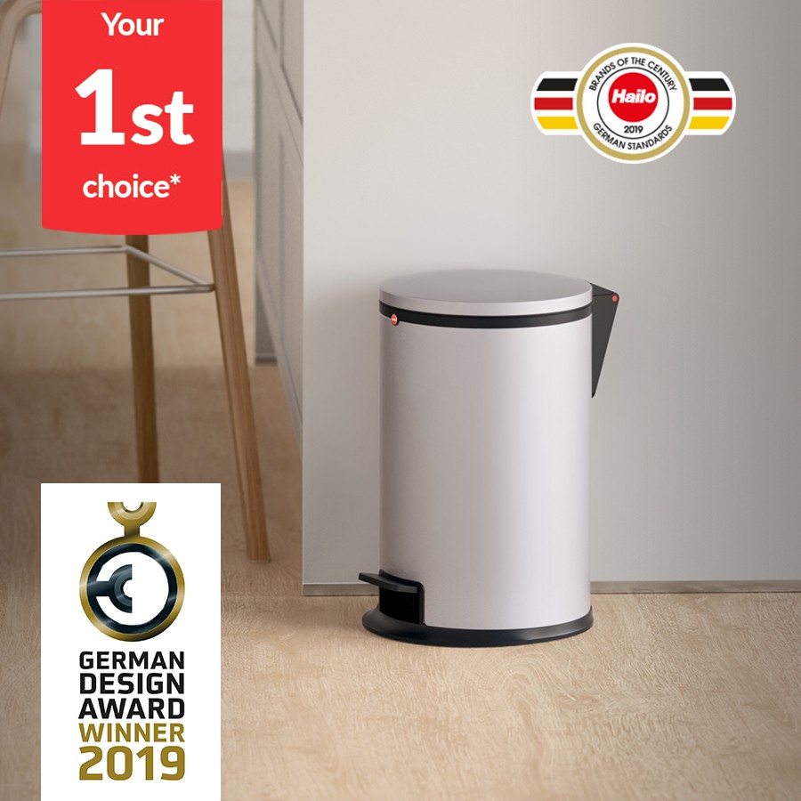 Thùng rác inox đạp chân cao cấp Hailo Pure S 3L hàng chính hãng 100% sản xuất tại Đức. Thương hiệu số 1 tại Đức, đạt nhiều giải thưởng danh giá về thiết kế và thương hiệu. Thân thùng bằng thép không gỉ chắc chắn, bền đẹp. Phần nắp đóng mở nhẹ nhàng với đệm cao su đảm bảo giảm tiếng ồn. Vòng cố định túi rác tăng tính thẩm mĩ cho sản phẩm. Thiết kế thùng tiện lợi, sang trọng phù hợp với nhiều không gian khác nhau trong ngôi nhà và văn phòng của bạn.ĐA DẠNG, THÍCH HỢP CHO NHIỀU MỤC ĐÍCH SỬ DỤNG
