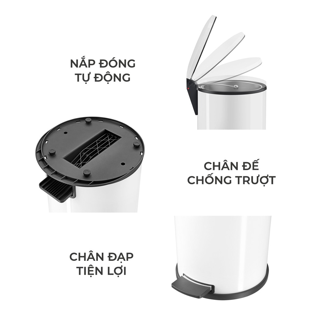 Cơ chế nắp đóng nhẹ nhàng, lớp cao su lót giữa phần thân và nắp thùng giúp hạn chế tối đa tiếng ồn, đem lại sự thoải mái khi sử dụng.
