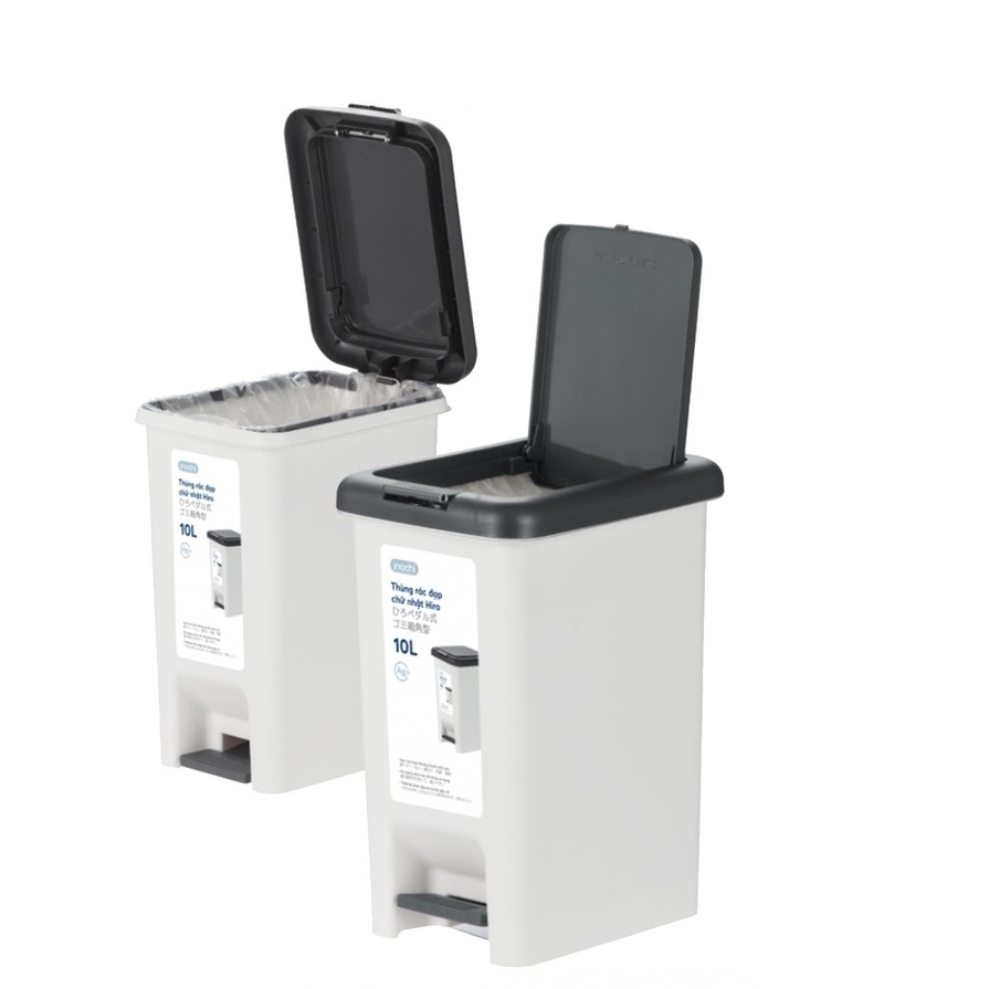 Thùng Rác Hiro Nhựa Đạp Chân Nắp Đậy Chữ Nhật INOCHI 15 Lít Làm Sọt Rác Văn Phòng Gia Đình