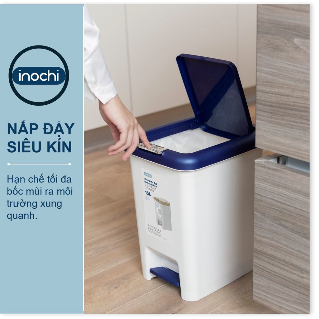 Thùng Rác Hiro Nhựa Đạp Chân Nắp Đậy Chữ Nhật INOCHI 15 Lít Làm Sọt Rác Văn Phòng Gia Đình TRAC15