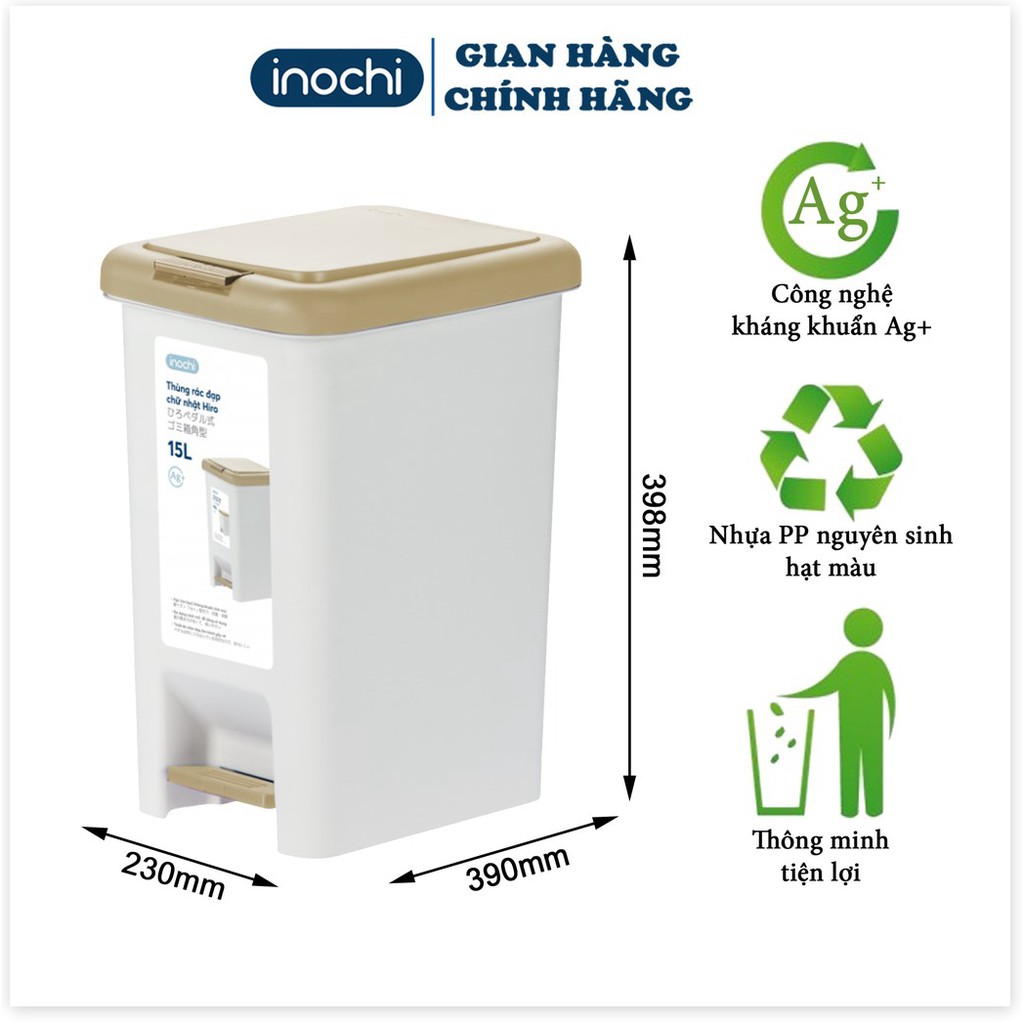 Giới thiệu Thùng Rác Hiro Nhựa Đạp Chân Nắp Đậy Chữ Nhật INOCHI 15 Lít Làm Sọt Rác Văn Phòng Gia Đình TRAC15