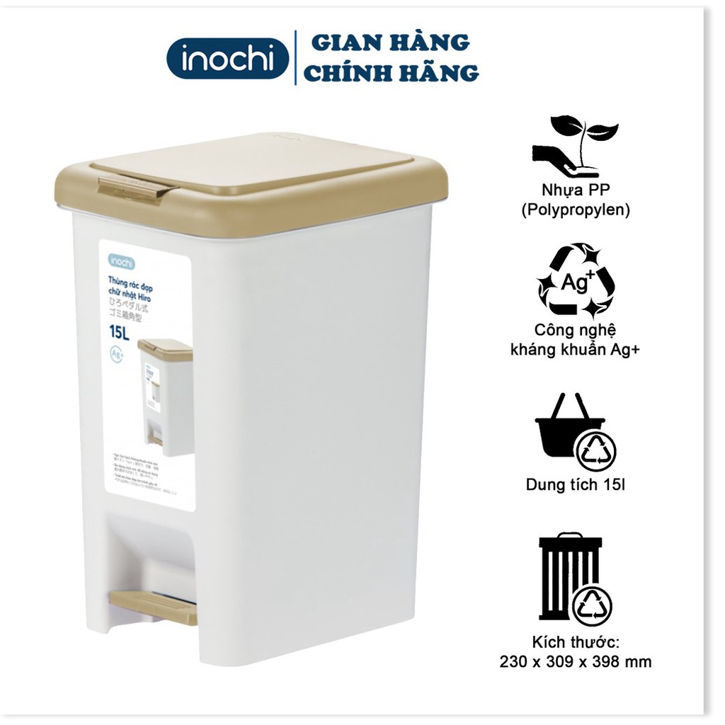 Nhà cửa & Đời sống > Dụng cụ chăm sóc nhà cửa > Thùng rác || Thùng Rác Hiro Nhựa Đạp Chân Nắp Đậy Chữ Nhật INOCHI 15 Lít Làm Sọt Rác Văn Phòng Gia ĐìnhCòn hàng