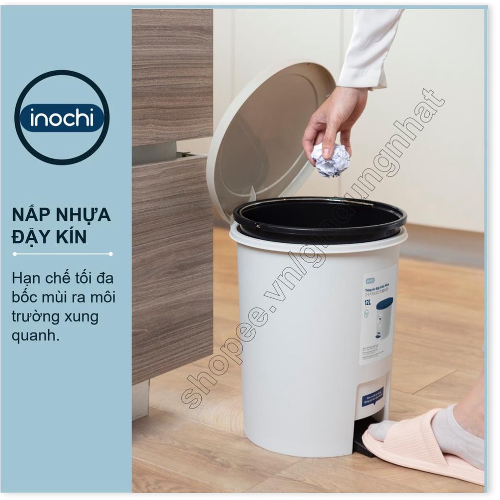 Thùng Rác Inochi Có Nắp Đậy Tròn 12 Lít, Đựng Rác Gia Đình, Trong Nhà, Ngoài Trời