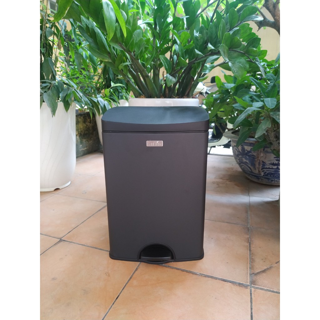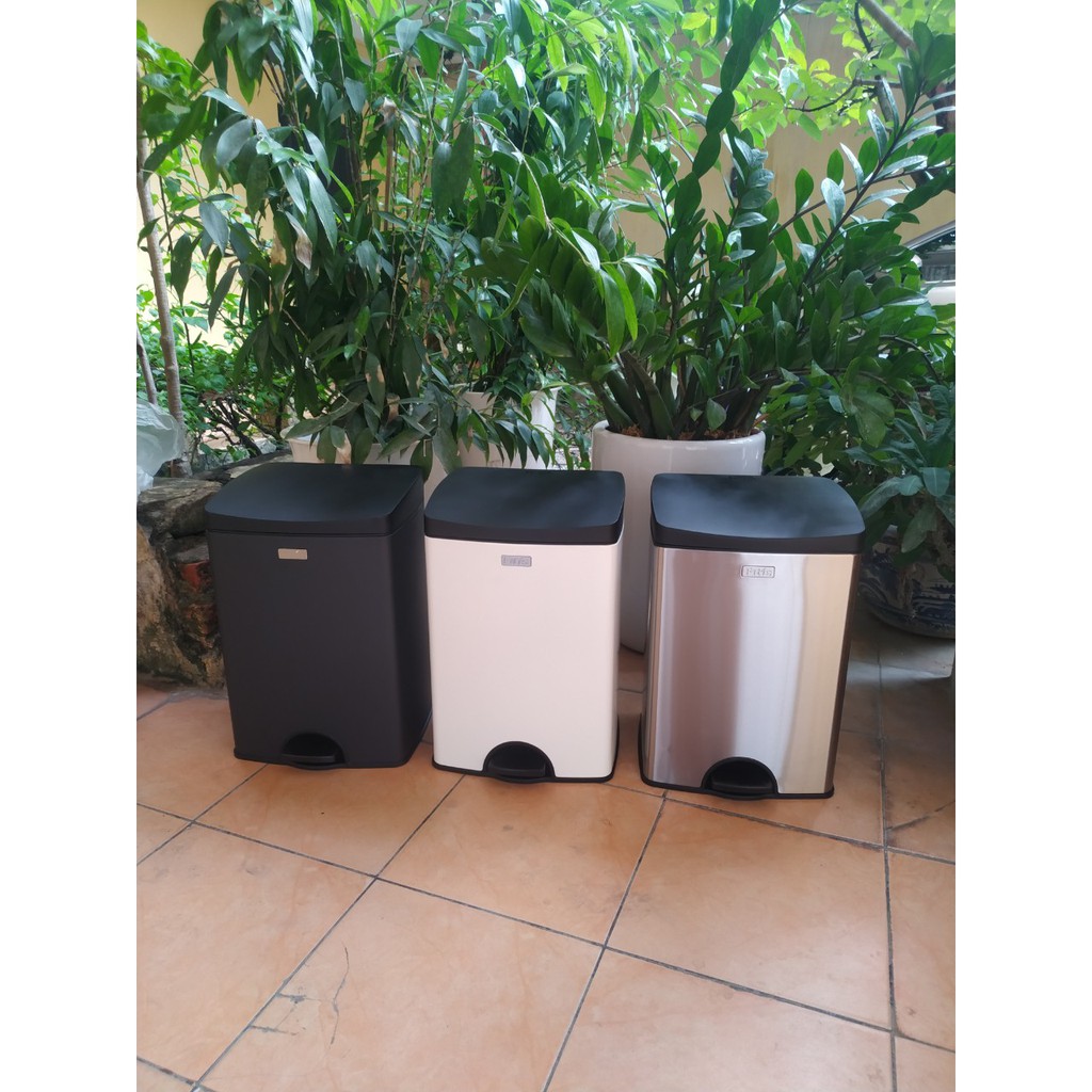 Giới thiệu Thùng rác inox 15 lít đạp vuông thấp Thùng rác FITIS đạp chân cho nhà bếp văn phòng