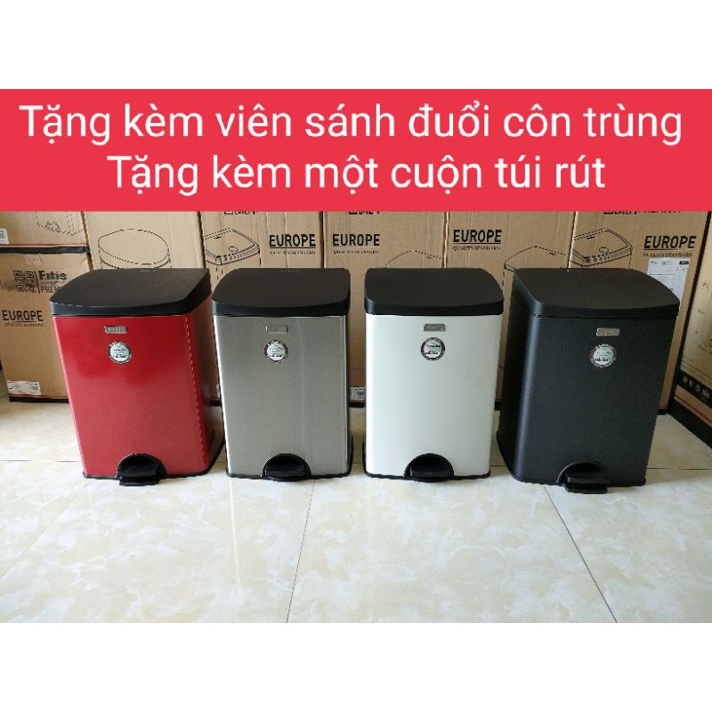 Thùng rác inox 15 lít đạp vuông thấp Thùng rác FITIS đạp chân cho nhà bếp văn phòng