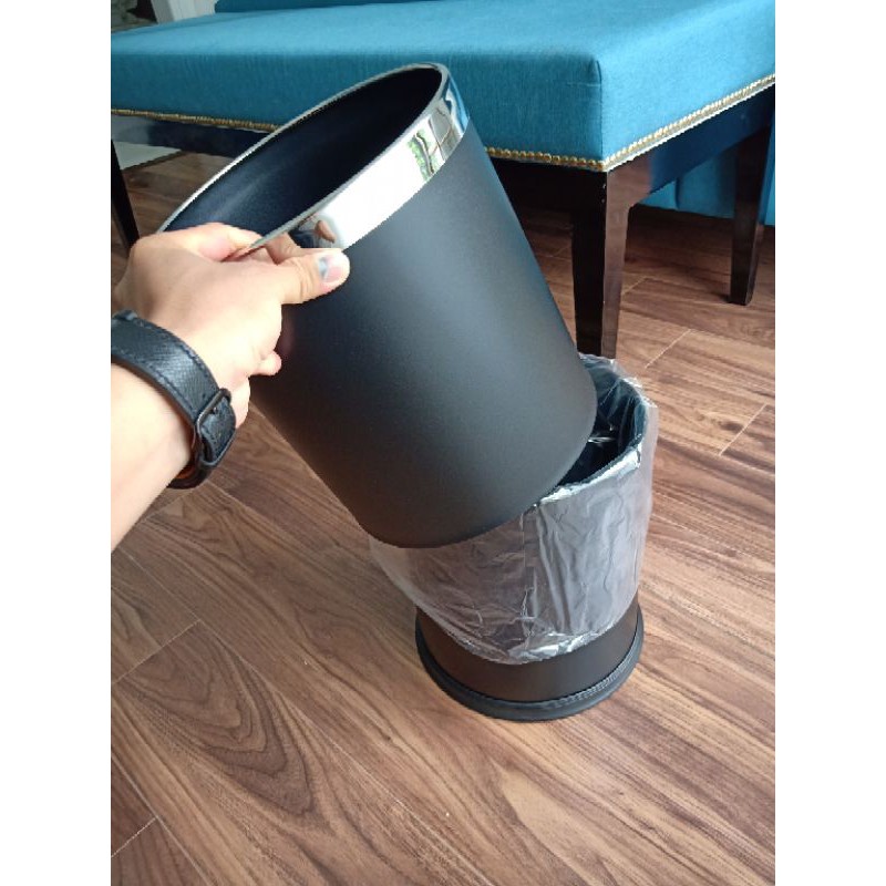 Thùng rác đặt phòng 2 lớp màu đen có thiết kế thông minh tiện dụng phù hợp với hầu hết mọi không gian sử dụng, được sử dụng trong khu vực văn phòng, tòa nhà, bệnh viện, trường học, đặt trong phòng khách sạn, khu vực nhà tắm, nhà bếp, phòng khách, trong các nhà hàng, quán ăn hay trong các hộ gia đình...