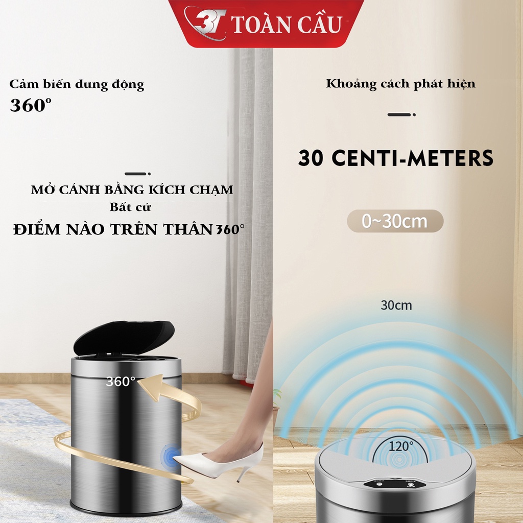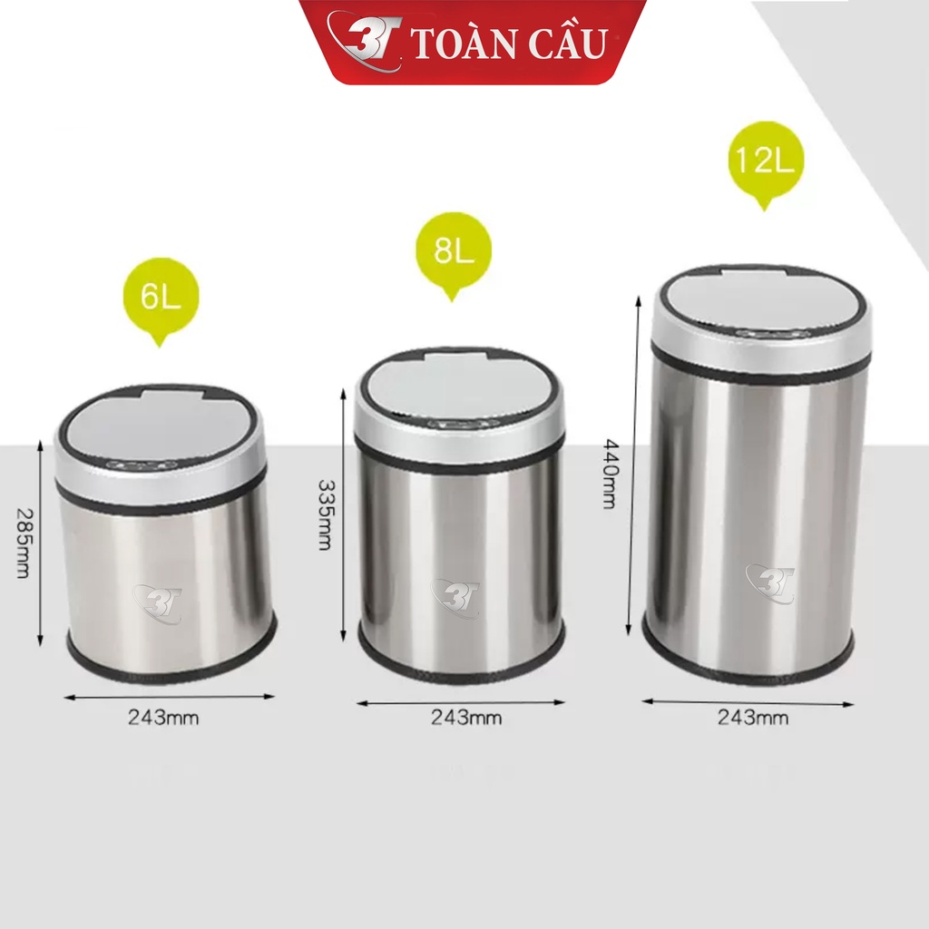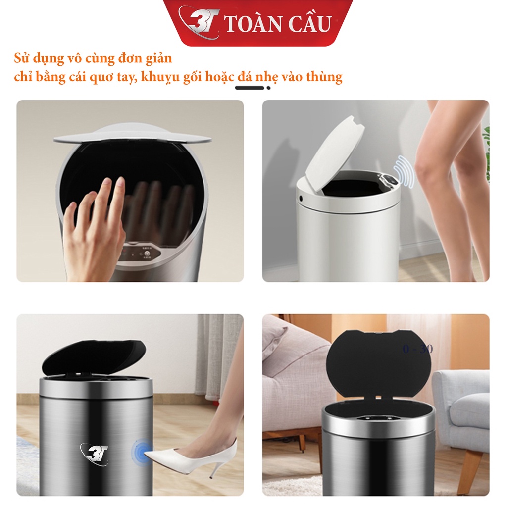 Thùng Rác INOX Cảm Biến Thông Minh 3T – Loại 12L Với 3 Chế Độ Đóng Mở, Sử Dụng Sạc Điện