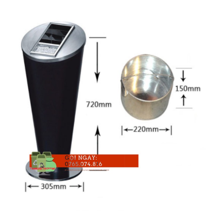 THÔNG TIN SẢN PHẨM THÙNG RÁC GẠT TÀN CHỮ V• Kích thước: 305 x 720mm
