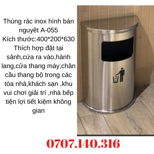 Giới thiệu Thùng Rác Inox Hình Bán Nguyệt màu Bạc