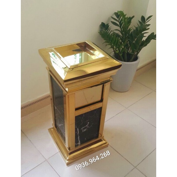 Liên hệ ( TEL/ ZALO ) 0936.964.268 để được miễn phí vận chuyểnThùng rác Inox mạ vàng đá đen ánh kim