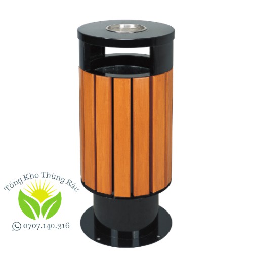 - Thùng rác bọc gỗ đầu thép sơn tĩnh điện là sự kết hợp hoàn hảo của gỗ bọc và khung thép sơn tĩnh điện màu đen với phần đầu có gạt tàn thuốc lá.