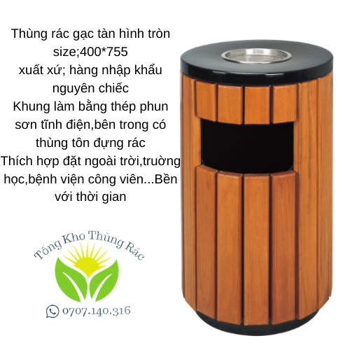 Nhà cửa & Đời sống > Dụng cụ chăm sóc nhà cửa > Thùng rác || Thùng Rác Inox Ngoài Trời Bọc Gỗ Đế Cao Hình Tròn, L-039Còn hàng
