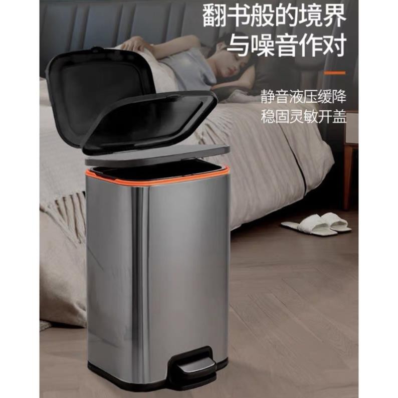 Thùng rác inox vuông dày cao cấp nắp đóng tự động (tặng kèm túi rác có quai tự cắt)