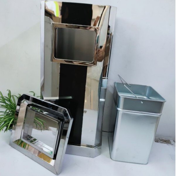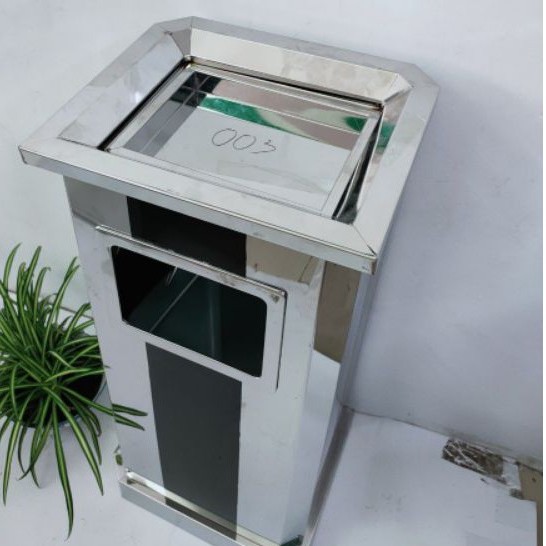 Thùng rác inox vuông gạc tàn sọc đen