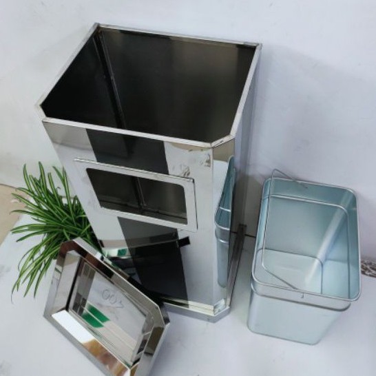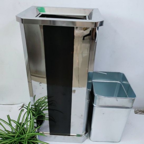 Nhà cửa & Đời sống > Dụng cụ chăm sóc nhà cửa > Thùng rác || Thùng rác inox vuông gạc tàn sọc đenCòn hàng