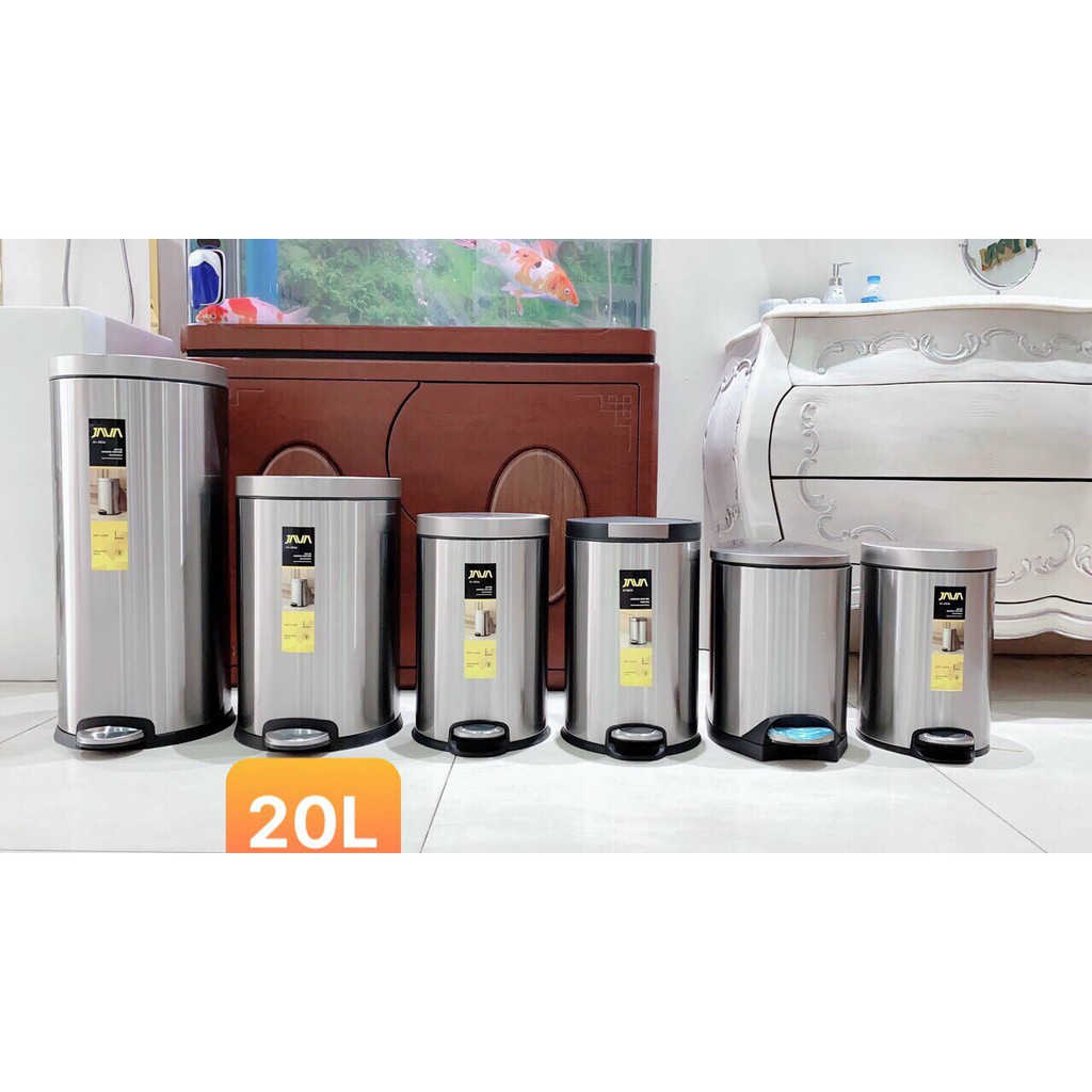 Nhà cửa & Đời sống > Dụng cụ chăm sóc nhà cửa > Thùng rác || Thùng rác JAVA tròn inox304- 8l-11l-12l-20l-30l nắp đậy rơi mêm dảm chấn cao cấpCòn hàng