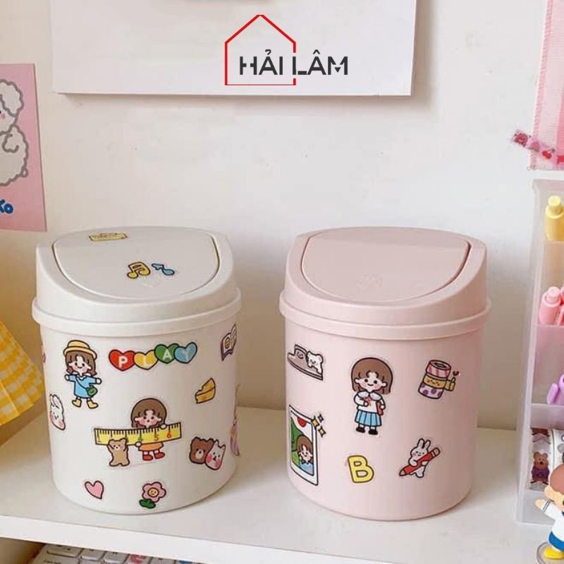 Thùng rác mini để bàn có nắp đậy tặng kèm miếng dán sticker