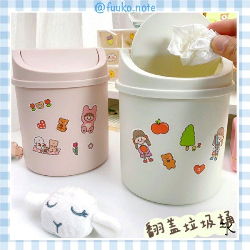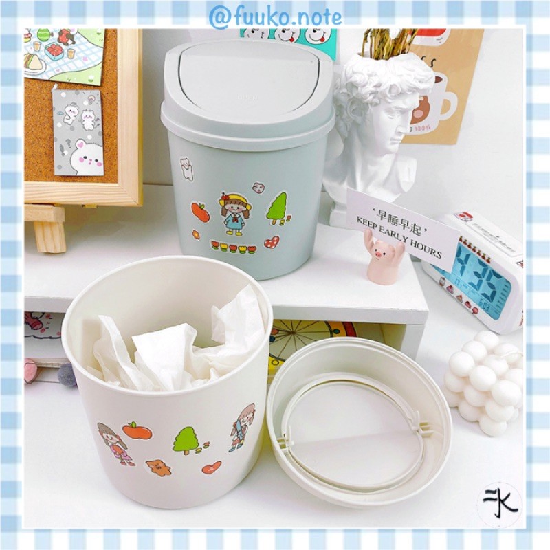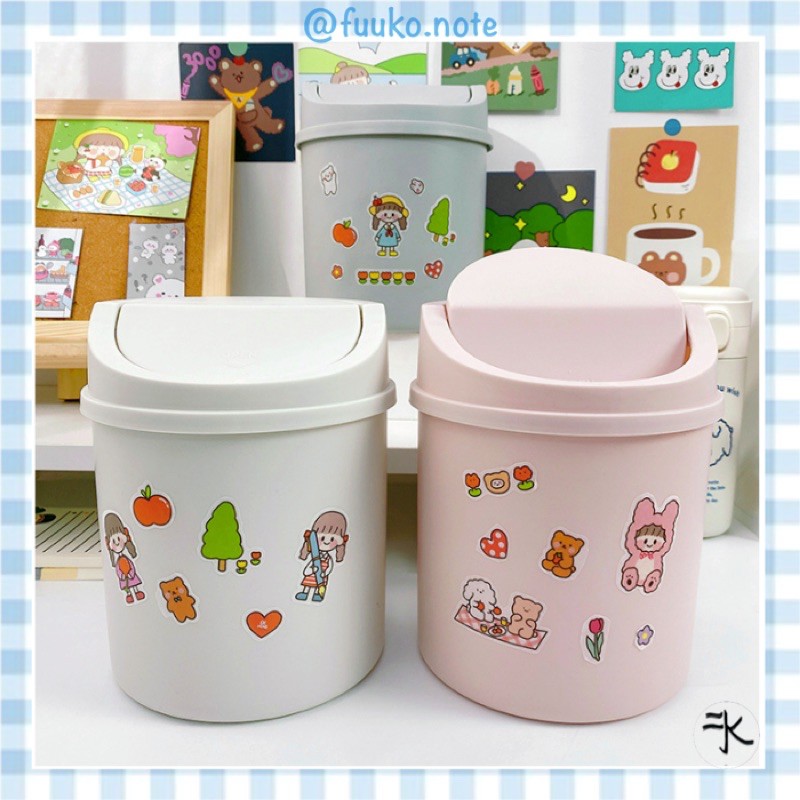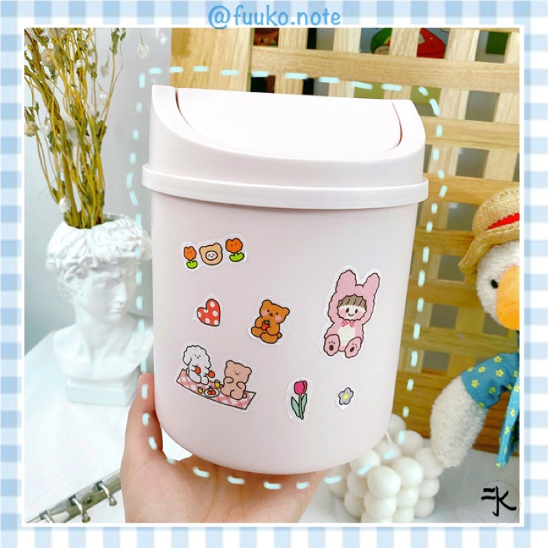 Thùng rác mini để bàn có nắp pastel Ins phong cách Hàn Aesthetic fuuko note