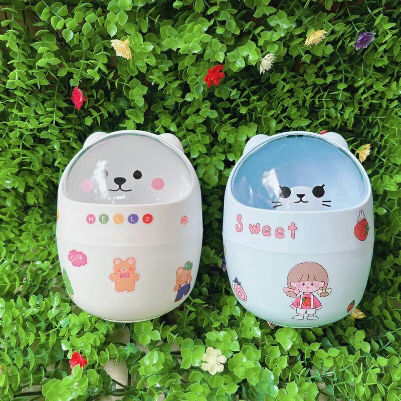 thùng rác mini để bàn đa năng hình mèo gấu xinh xắn