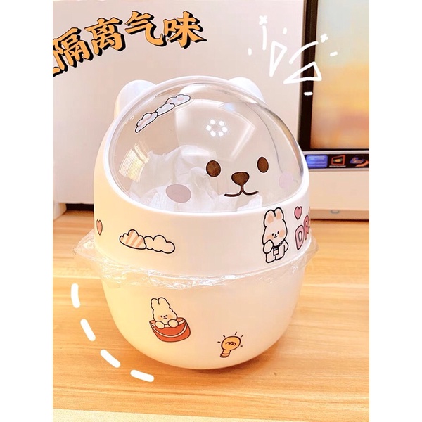 Thùng rác mini để bàn FREESHIP 02Thùng rác nhựa hình gấu đa năng có nắp để bàn đa năng