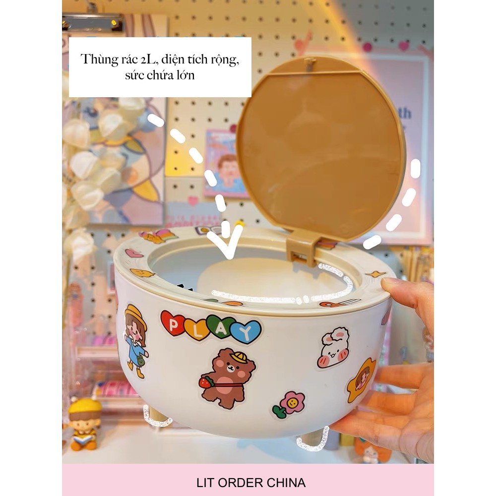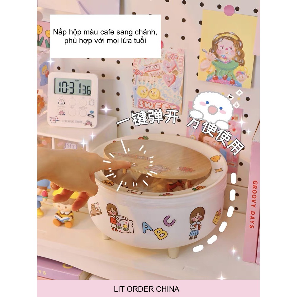 Thùng rác mini để bàn FULL STICKER phong cách Hàn Quốc