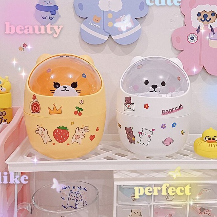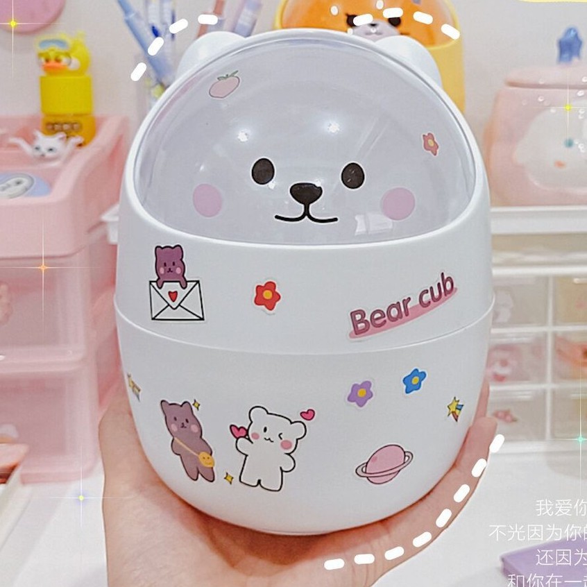 Nhà cửa & Đời sống > Dụng cụ chăm sóc nhà cửa > Thùng rác || Thùng rác mini để bàn hình gấu nắp lăn cute (Tặng kèm sticker trang trí)Còn hàng