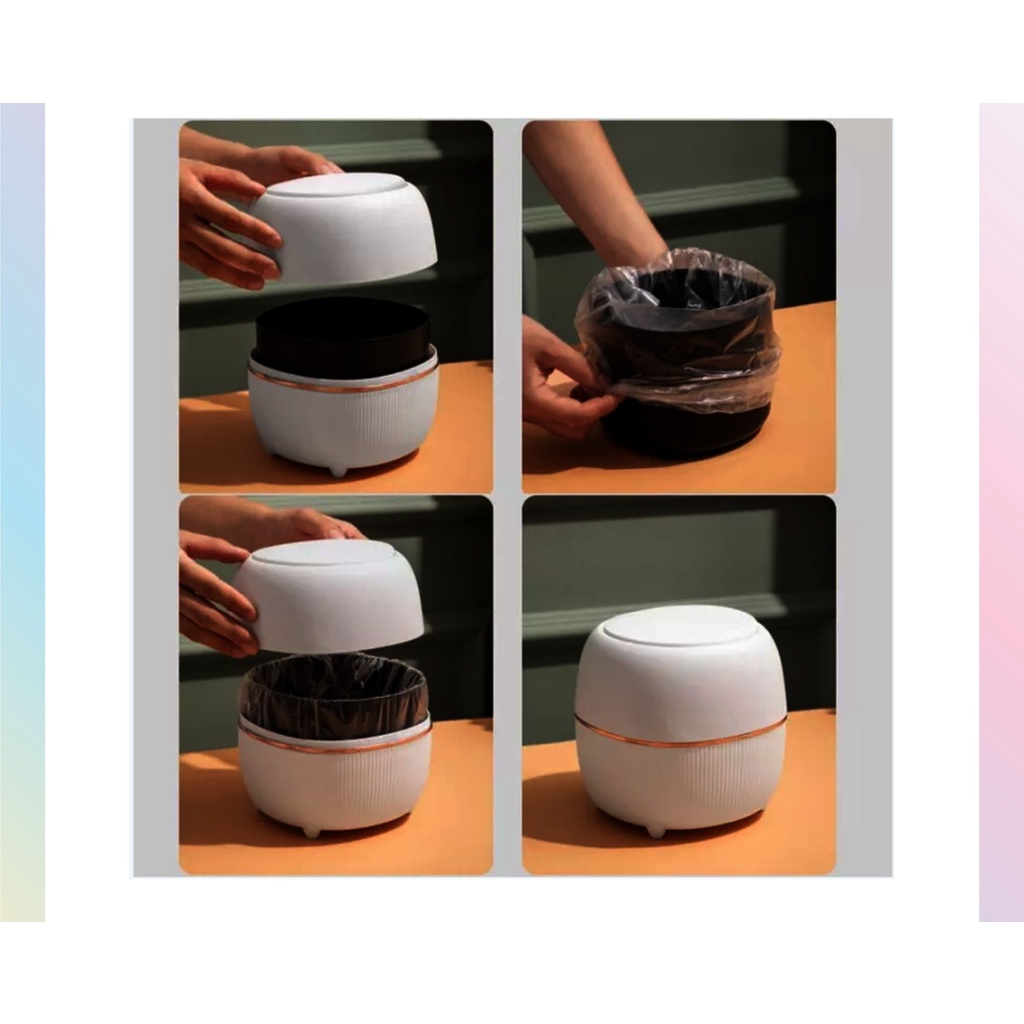 + Khi mở nắp thùng rác mini, thùng rác để bàn, dùng tay ấn xuống sau đó thả tay ra nắp thùng rác sẽ tự động bật lên.
