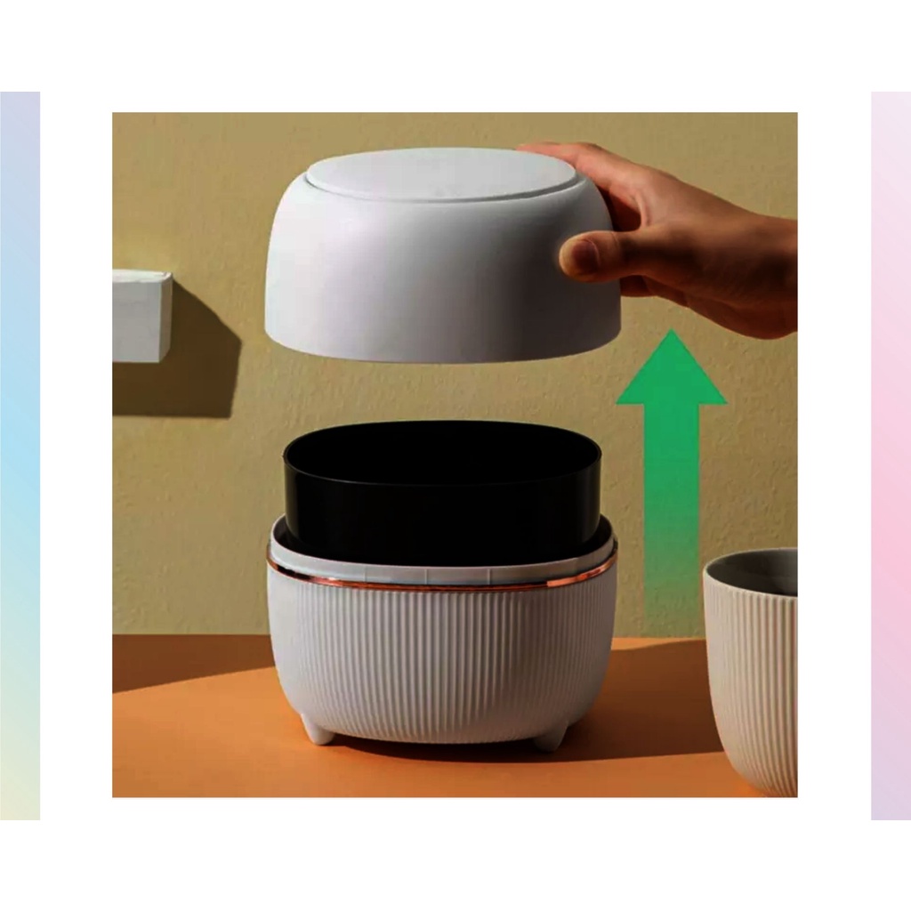 + Khi mở nắp thùng rác mini, thùng rác để bàn, dùng tay ấn xuống sau đó thả tay ra nắp thùng rác sẽ tự động bật lên.