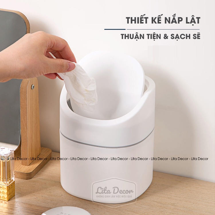 Thùng rác Mini Để bàn Nhựa Cứng cáp Dung tích 2 lít, đa năng tiện lợi TRLT03