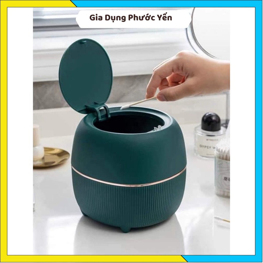 Thùng rác mini để bàn phong cách Bắc Âu- có hình dáng nhỏ gọn. Thiết kế phần nắp đậy kín có thể giữ lại mùi của rác bên trong kín đáo không bay hơi ra ngoài.