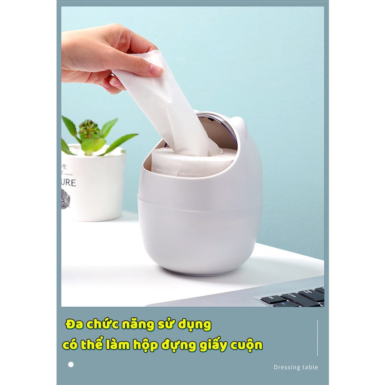 Thùng rác mini để bàn Thùng rác hình gấu cute có nắp dễ thương tặng sticker – Hộp đựng bút đa năng