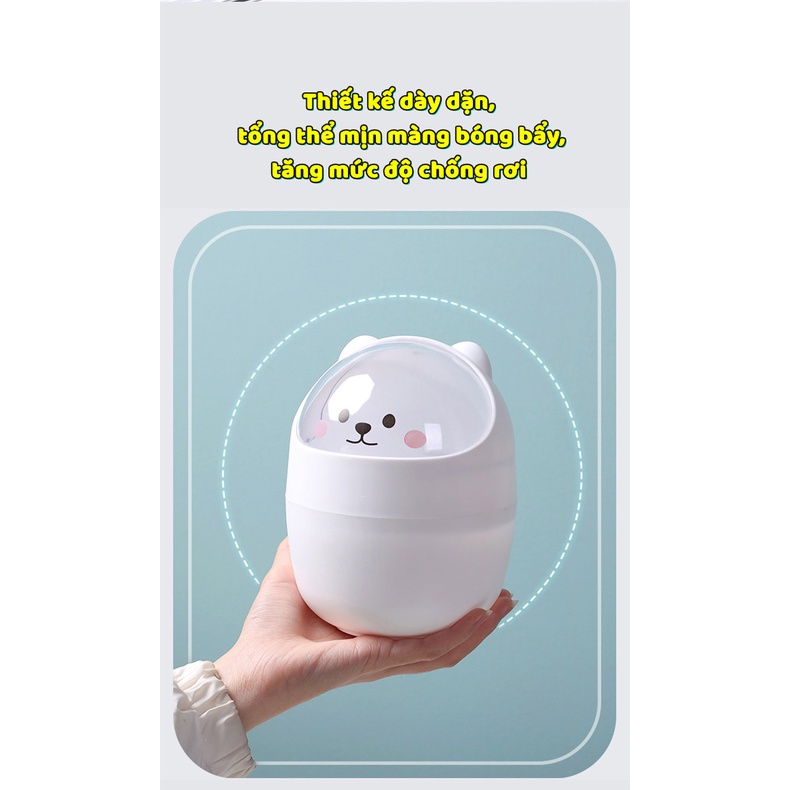 Thùng rác mini để bàn🔥 Thùng rác gấu có nắp dễ thương tặng sticker – Hộp đựng bút đa năng