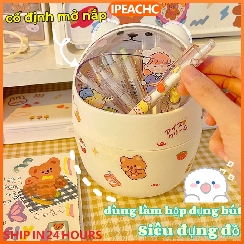 Nhà cửa & Đời sống > Dụng cụ chăm sóc nhà cửa > Thùng rác || Thùng rác mini để bàn Thùng rác hình gấu cute có nắp dễ thương tặng sticker – Hộp đựng bút đa năngCòn hàng