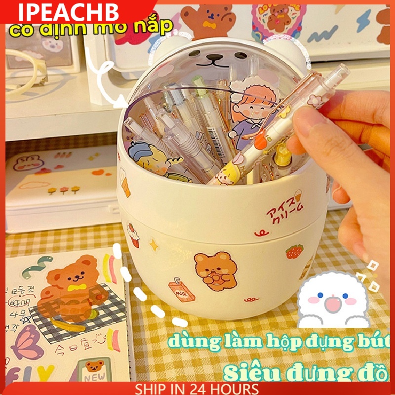 Thùng rác gấu có nắp dễ thương tặng sticker – Hộp đựng bút đa năng