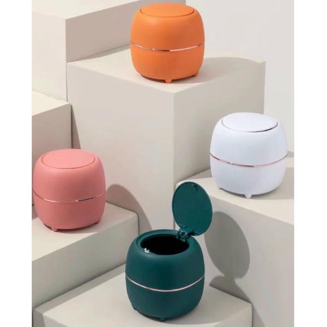 Thùng rác mini để bàn tiện lợi,thùng giác thông minh phong cách bắc âu có nắp bấm .