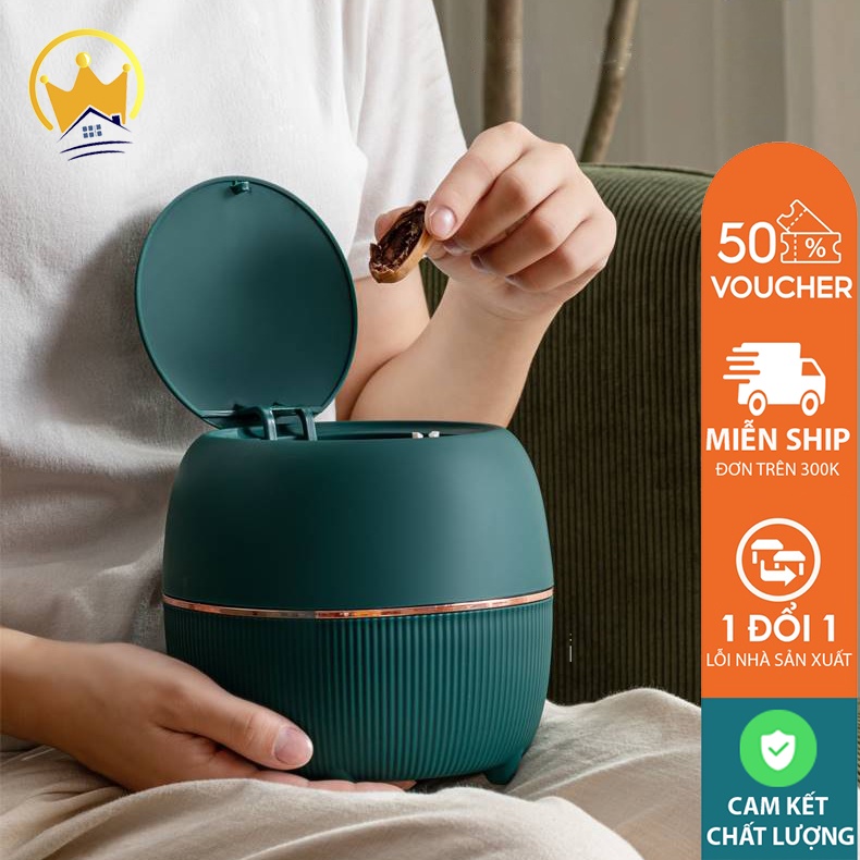 Thùng rác mini để bàn tiện lợi Thùng rác văn phòng thông minh có nắp bấm
