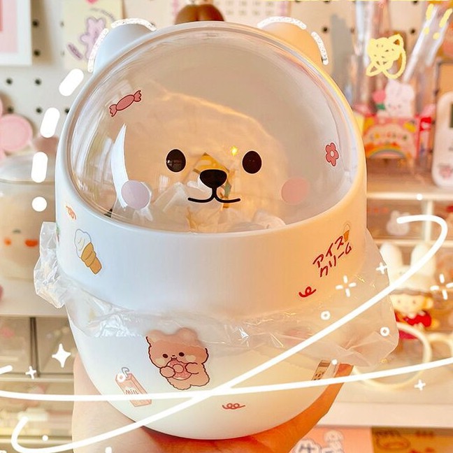 Nhà cửa & Đời sống > Dụng cụ chăm sóc nhà cửa > Thùng rác || Thùng rác mini, Giỏ đựng rác để bàn có nắp mini, hình chú gấu xinh xắn [Tặng kèm sticker]Còn hàng