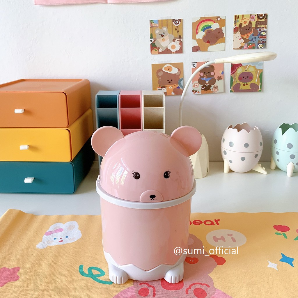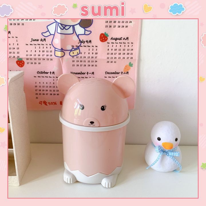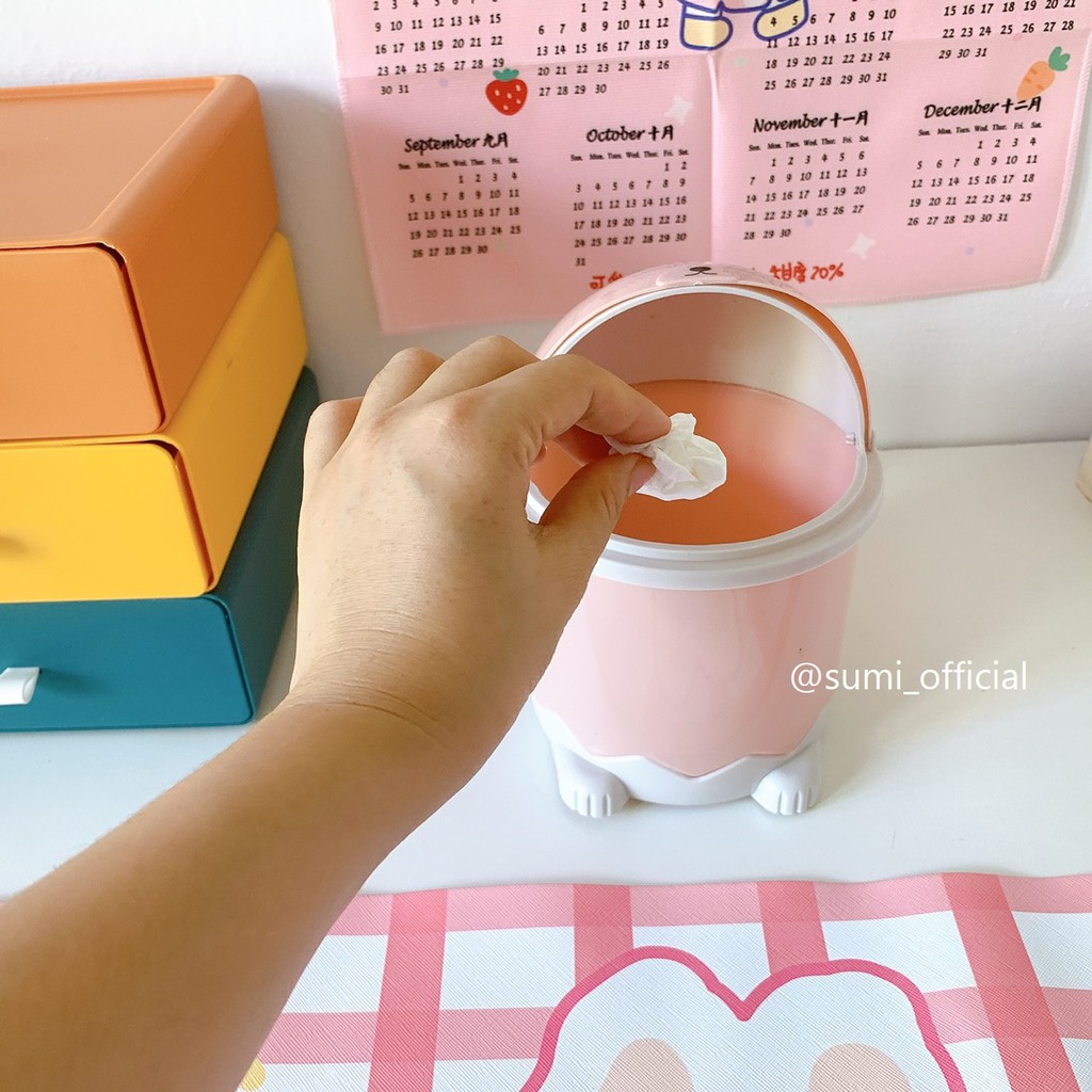 Thùng rác mini hình chuột hồng để bàn, sọt rác nhỏ để văn phòng tiện lợi Sumi