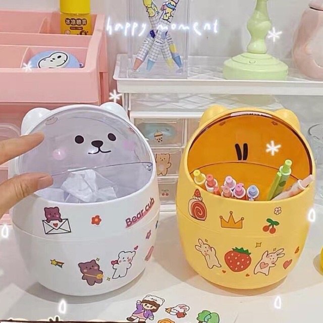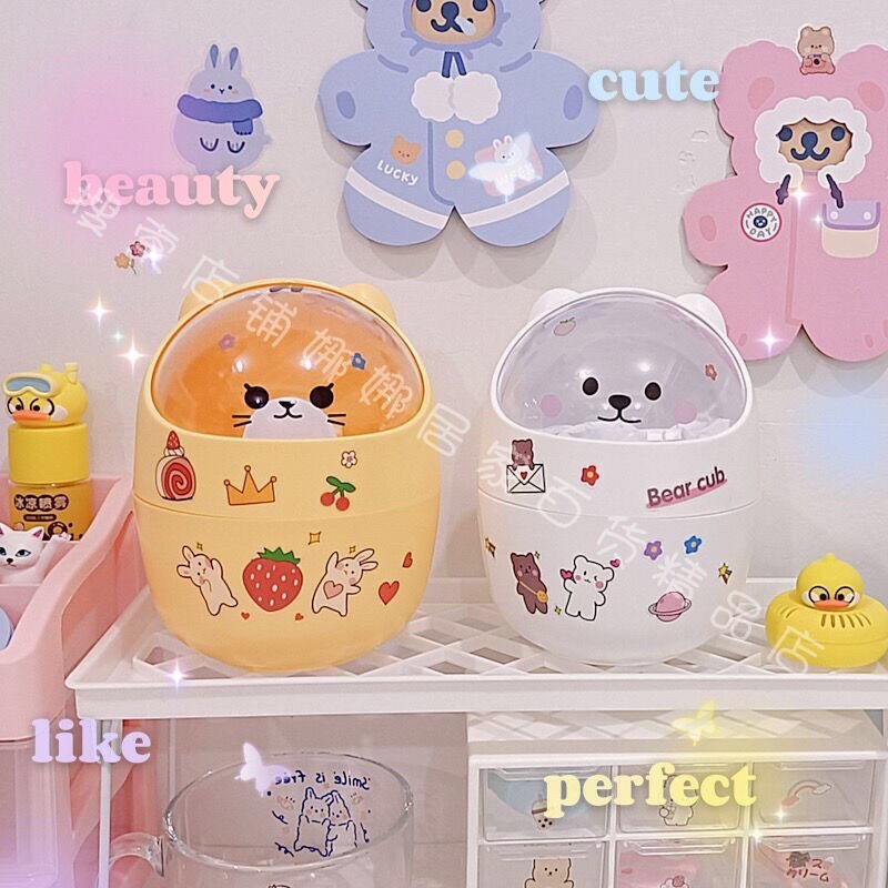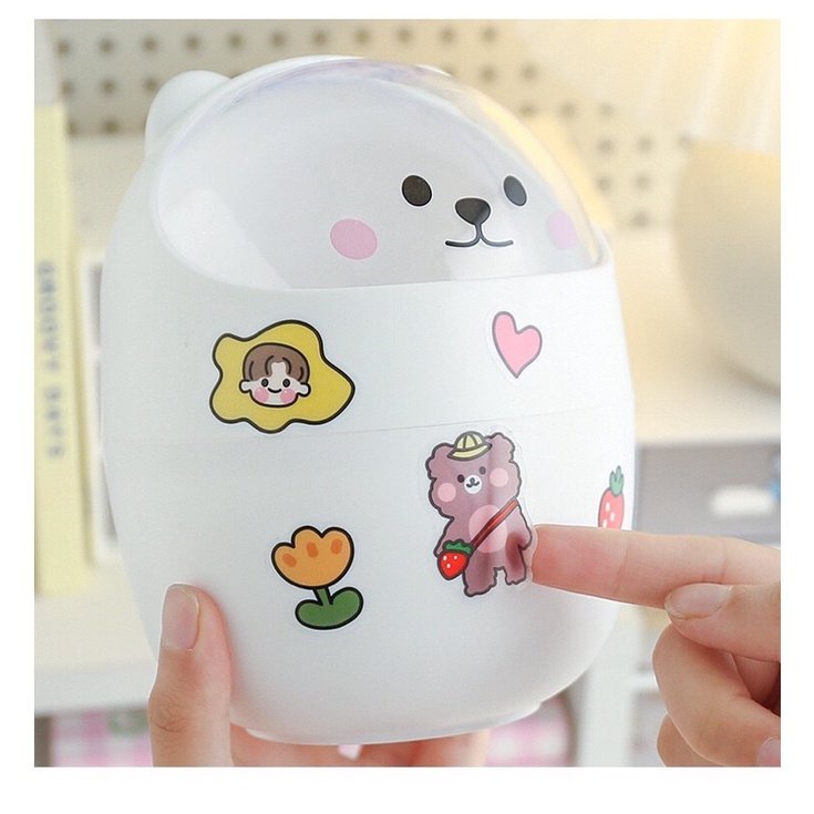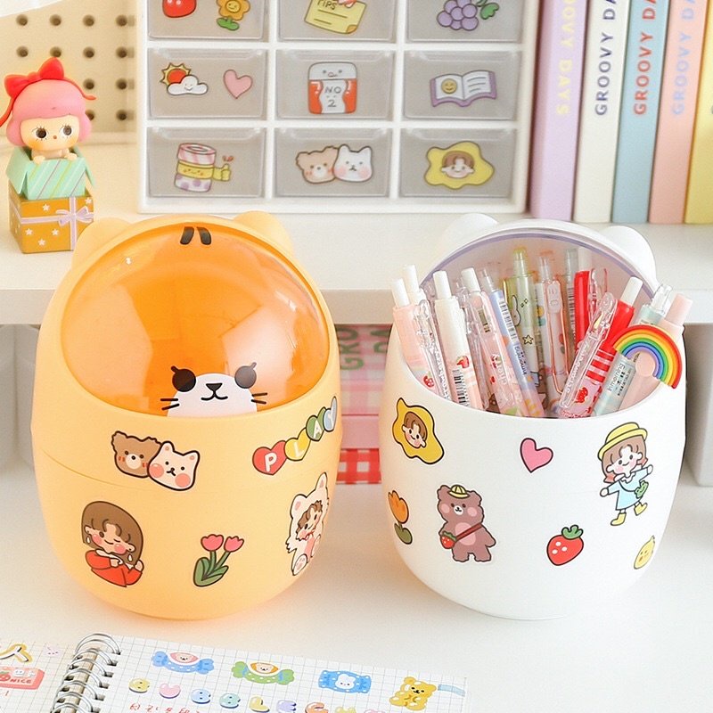 THÙNG RÁC MINI HÌNH MÈO DỄ THƯƠNG ĐỂ BÀN TẶNG KÈM STICKER TRANG TRÍ