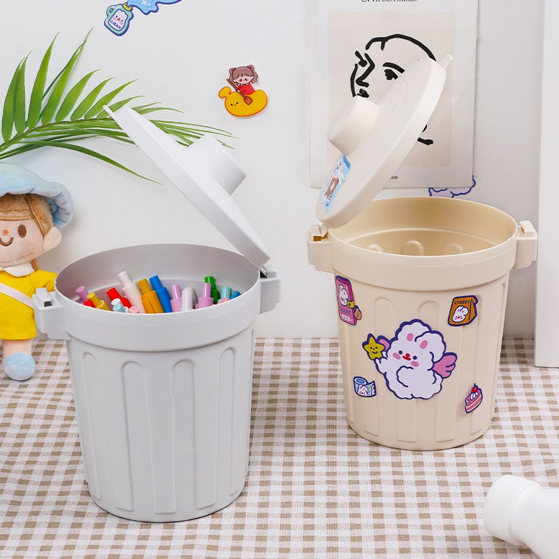Thùng rác mini, Hộp đựng có nắp đa năng trang trí bàn học 10*18cm