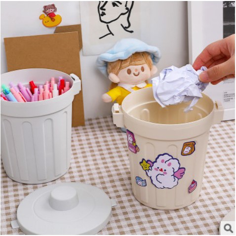 THÙNG RÁC MINI, HỘP ĐỰNG NHỎ ĐỂ BÀN, DECOR TRANG TRÍ BÀN HỌC, CÓ NẮP ĐẬY TIỆN DỤNG (CÓ 2 MÀU)