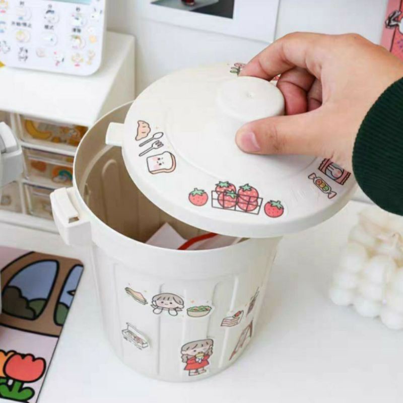 Thùng rác mini, hộp đựng nhỏ hình chiếc xô để bàn học bàn làm việc có nắp đậy tiện lợi
