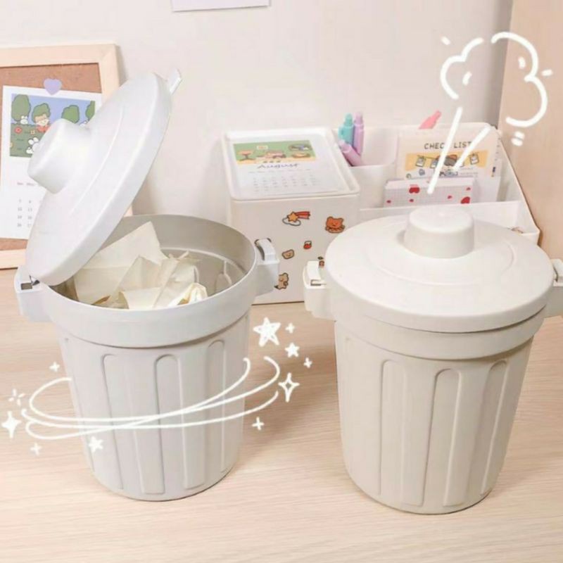 Nhà cửa & Đời sống > Dụng cụ chăm sóc nhà cửa > Thùng rác || Thùng rác mini, hộp đựng nhỏ hình chiếc xô để bàn học bàn làm việc có nắp đậy tiện lợi 2 màu ghi và trắngCòn hàng