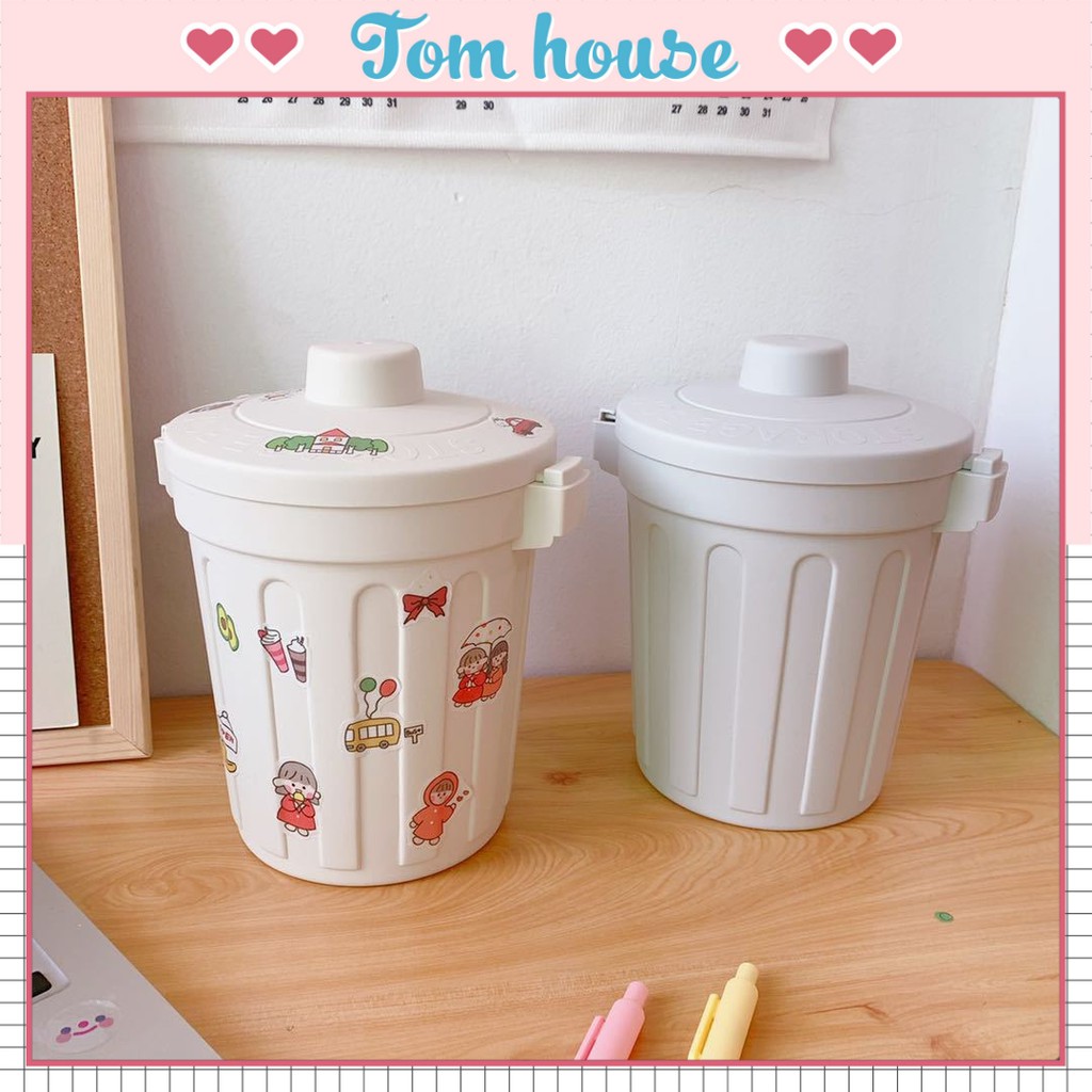 Thùng rác mini, hộp đựng nhỏ hình chiếc xô để bàn học bàn làm việc có nắp đậy tiện lợi 2 màu ghi và trắng Tom House