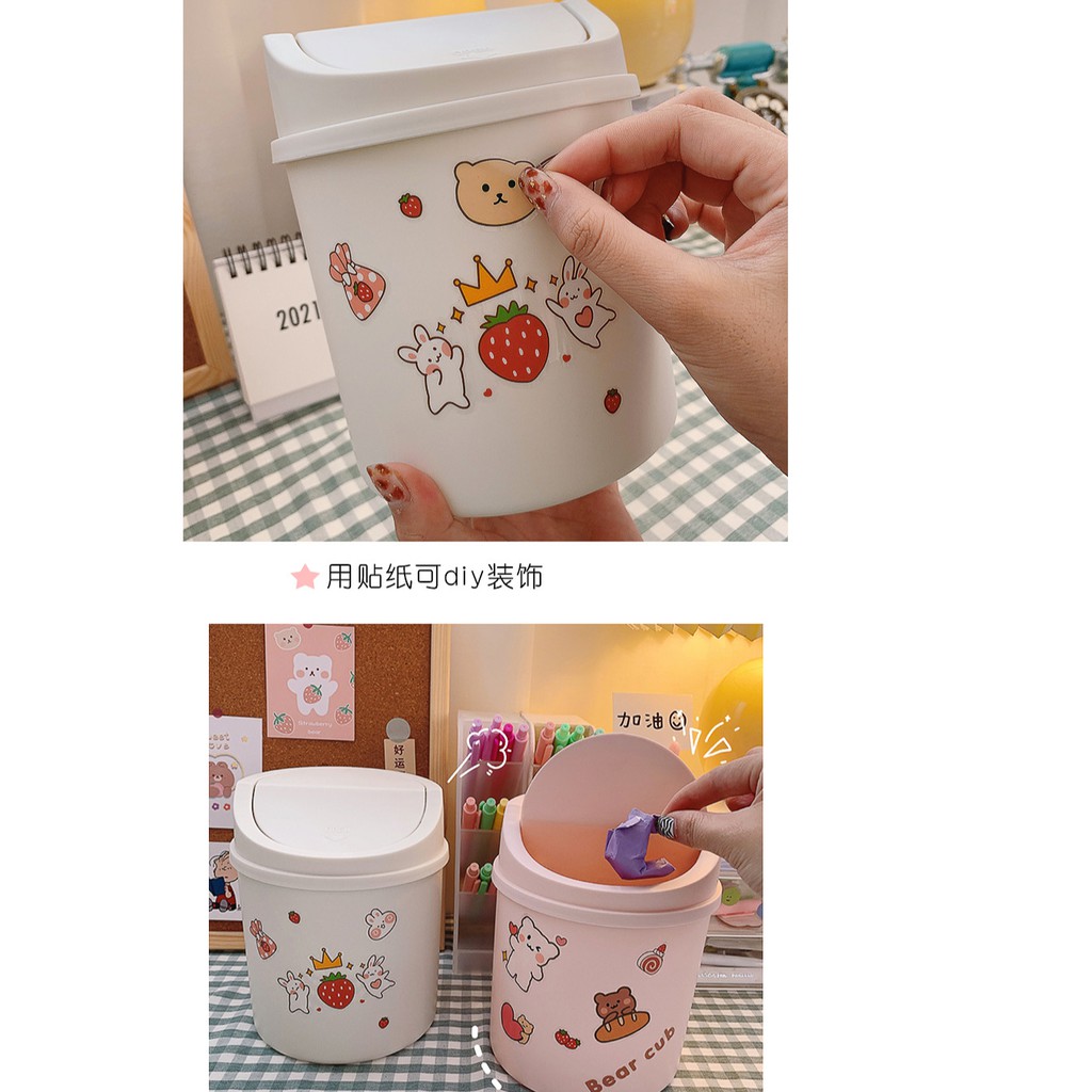 Thùng rác mini, hộp đựng nhỏ xinh để bàn học bàn làm việc có nắp đậy tiện lợi 2 màu hồng và trắng
