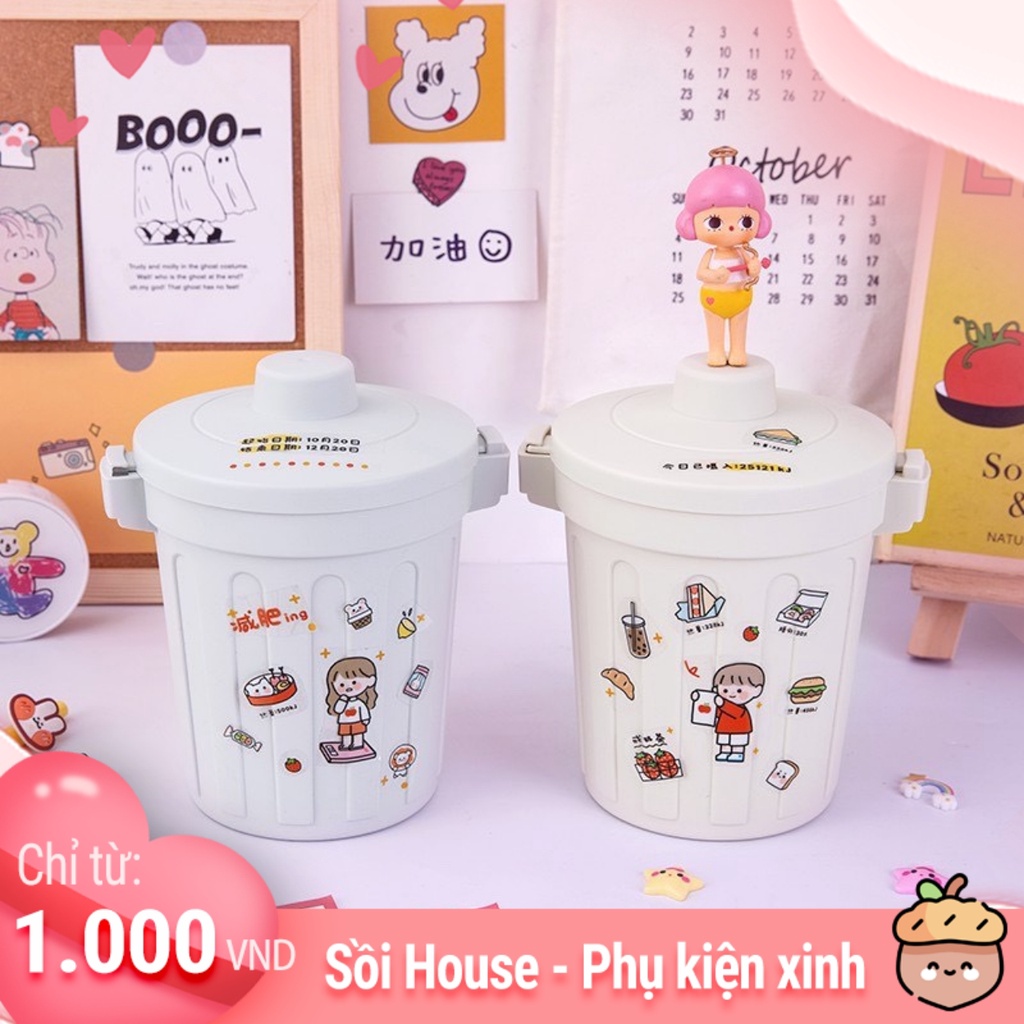 Thùng rác mini, hộp đựng nhỏ hình chiếc xô trang trí góc học tập,làm việc tiện lợi 2 màu ghi và trắng Sồi House